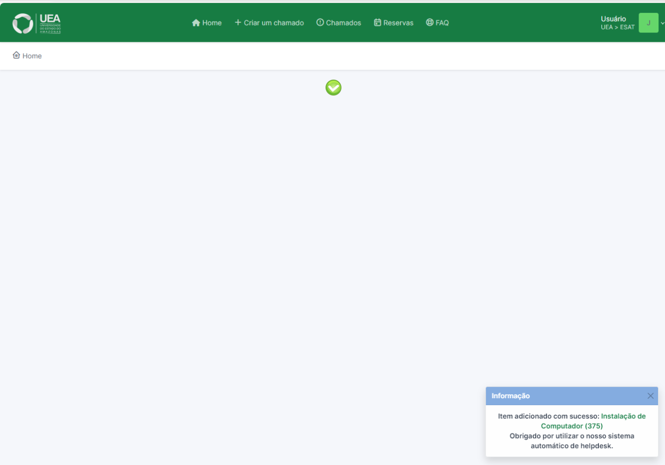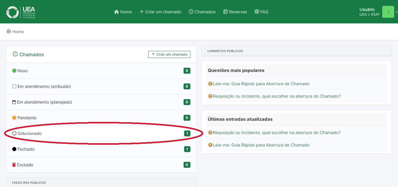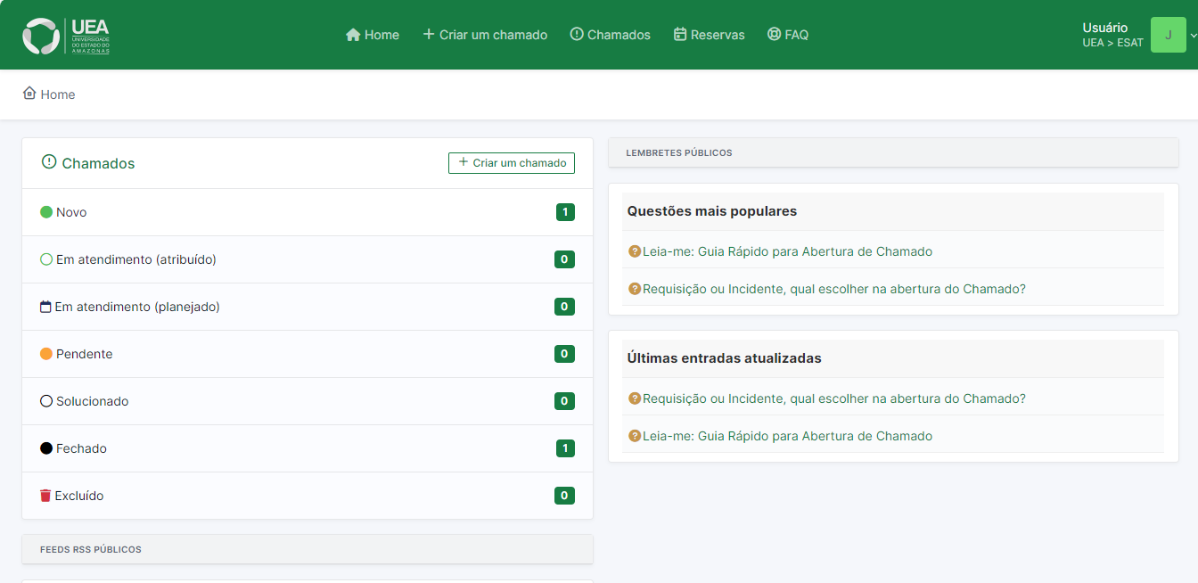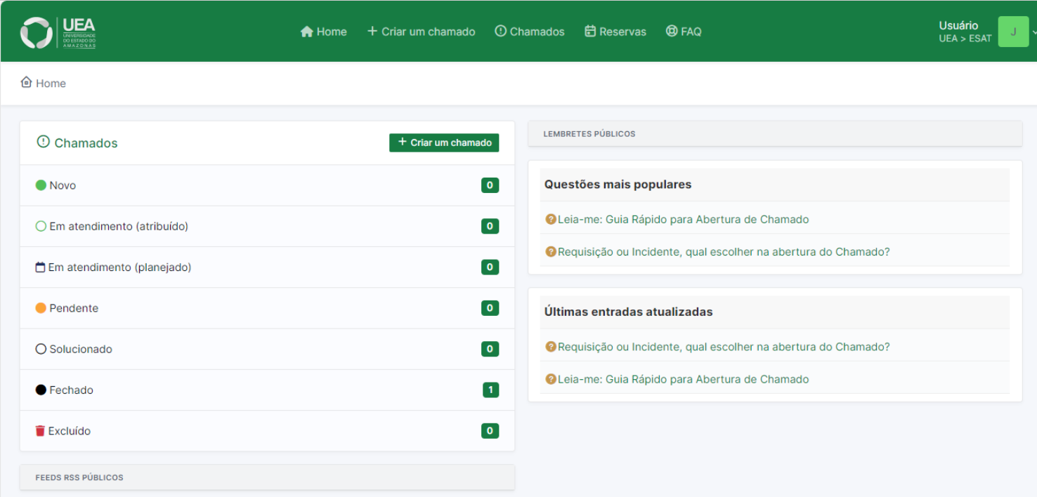 | Conteúdo1. Acesso ao SistemaAcesse ao endereço https://glpi.uea.edu.br e preencha os campos com o seu usuário e senha de domínio (a mesma credencial utilizada para acessar os sistemas internos e e-mail institucional sem o @uea.edu.br). Figura 1 – Tela Inicial da Ferramenta 2. Verifique sua Unidade OrganizacionalPara facilitar o contato da equipe de suporte verifique se sua unidade organizacional está correta. Para realizar verificação, click em cima da letra inicial do seu nome, conforme figura abaixo. Caso a unidade organizacional esteja errada será necessário a abertura de uma requisição para alteração da mesma. 3. Registre um chamadoToque na opção Criar um chamado conforme imagem abaixo: Em primeiro lugar você deve selecione o tipo de chamado: Incidente ou Requisição. INCIDENTE: É qualquer acontecimento que ocorre com algum componente que tenha alguma ligação com um serviço já prestado pelo departamento de TI e que não faça parte do comportamento padrão de usabilidade causando assim a redução na qualidade do serviço de TI ou até mesmo a interrupção do serviço como um todo. Abaixo alguns exemplos: ► Internet Lenta; ► Computador não liga; ► Um relatório do Lyceum não abre; ► Impressora com problema para imprimir.