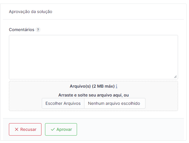 5. Aprovar ou Validar um ChamadoQuando o técnico responsável pelo atendimento de um chamado resolve a solicitação, ele coloca o Chamado no status de SOLUCIONADO. Caberá ao Solicitante verificar se a sua solicitação realmente foi atendida. Ou seja, o Solicitante poderá “APROVAR A SOLUÇÃO” ou “REPROVAR A SOLUÇÃO”. Ressaltamos que, caso o Solicitante não aprove ou reprove a solução em até 5 dias corridos, o chamado será automaticamente fechado e não poderá ser reaberto.
